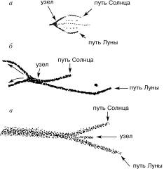 Рис. 19. Узлы лунной орбиты и маршруты движения Луны и Солнца в образно-графическом и числовом отражениях: